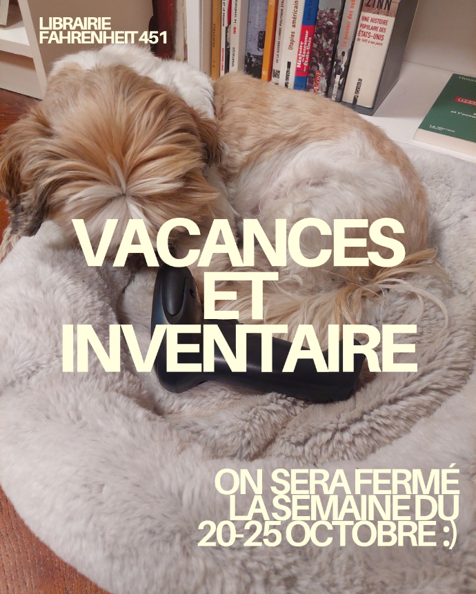 La librairie sera fermée la semaine du 20 octobre 2025, pour inventaire et repos !